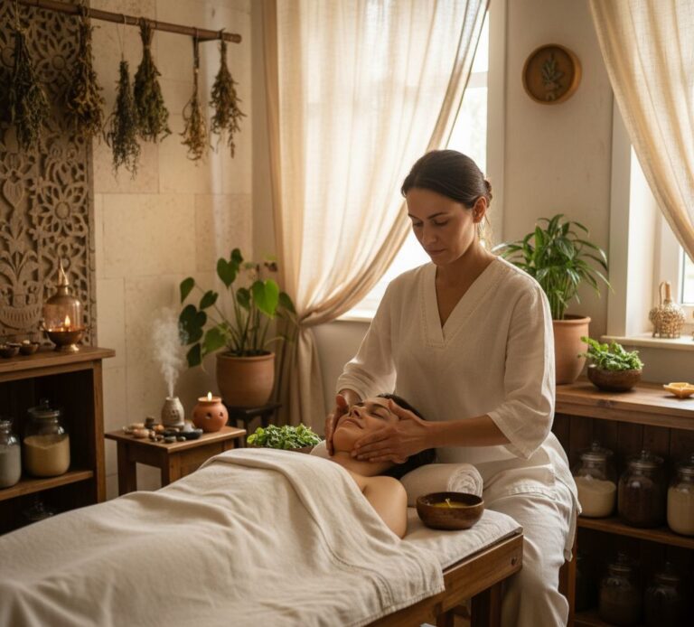 Ayurvedic prenatal care focuses on strengthening the mother’s body, preparing the pelvic muscles, and keeping the mind calm for labour.